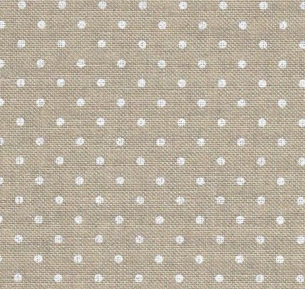 Cette toile de lin a pour base un coloris naturel, sans teinte ni lavage, et comporte des pois blancs imprimés sur la toile.