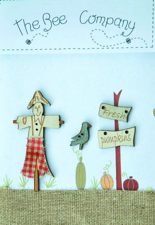 L'épouvatail mesure 6 x3 cm environ, les autres boutons 2 cm de diamètre environ