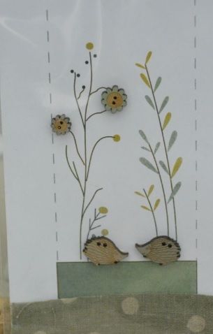 4 boutons en bois peint : 2 fleurs de 1 cm de diamètre, 2 hérissons de 2 cm de diamètre