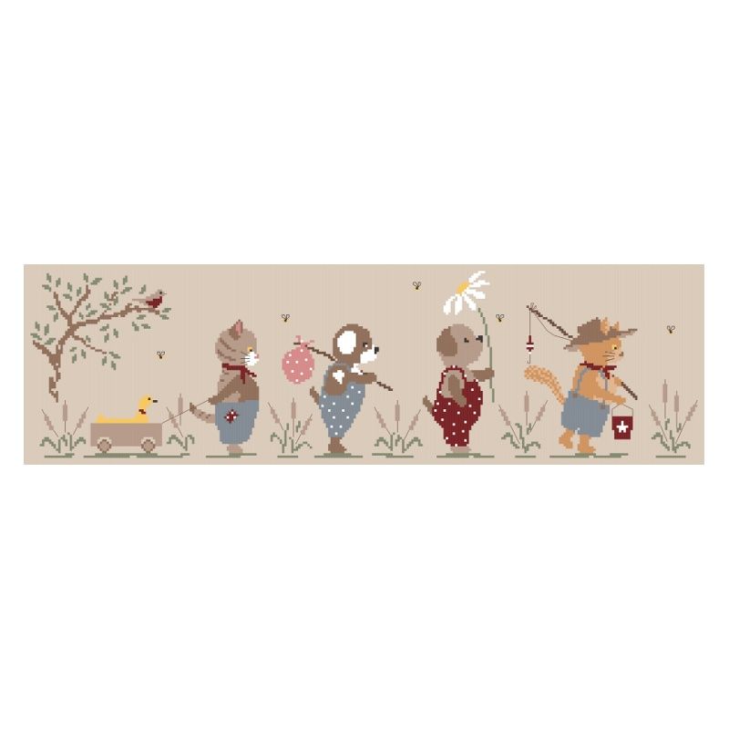 Toile et fils suggérés : toile coloris lin naturel ou ficelle, DMC mouliné: 152.437.535.738.744.840.841.842.932.3053.3721.B5200