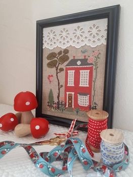 Toile et fils suggérés : lin naturel, DMC mouliné: 646,645,3799,3821,760,761,3712,3328,928,926,3768,3053,3363,3011,3828,420,3781,blanc