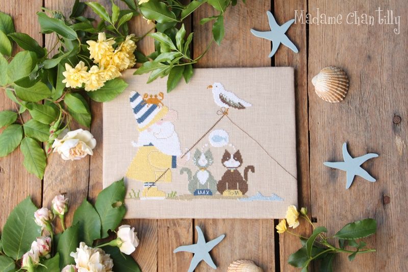 Toile et fils suggérés : lin naturel, DMC mouliné : 470.612.761.782.930.950.3022.3752.3781.3822.blanc