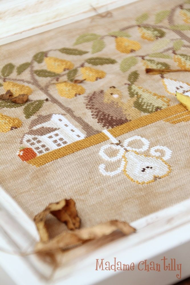 Toile et fils suggérés : lin naturel, DMC mouliné: 225.301.372.680.729.815.839.840.3011.3012.3033.3045.3371.3790.blanc