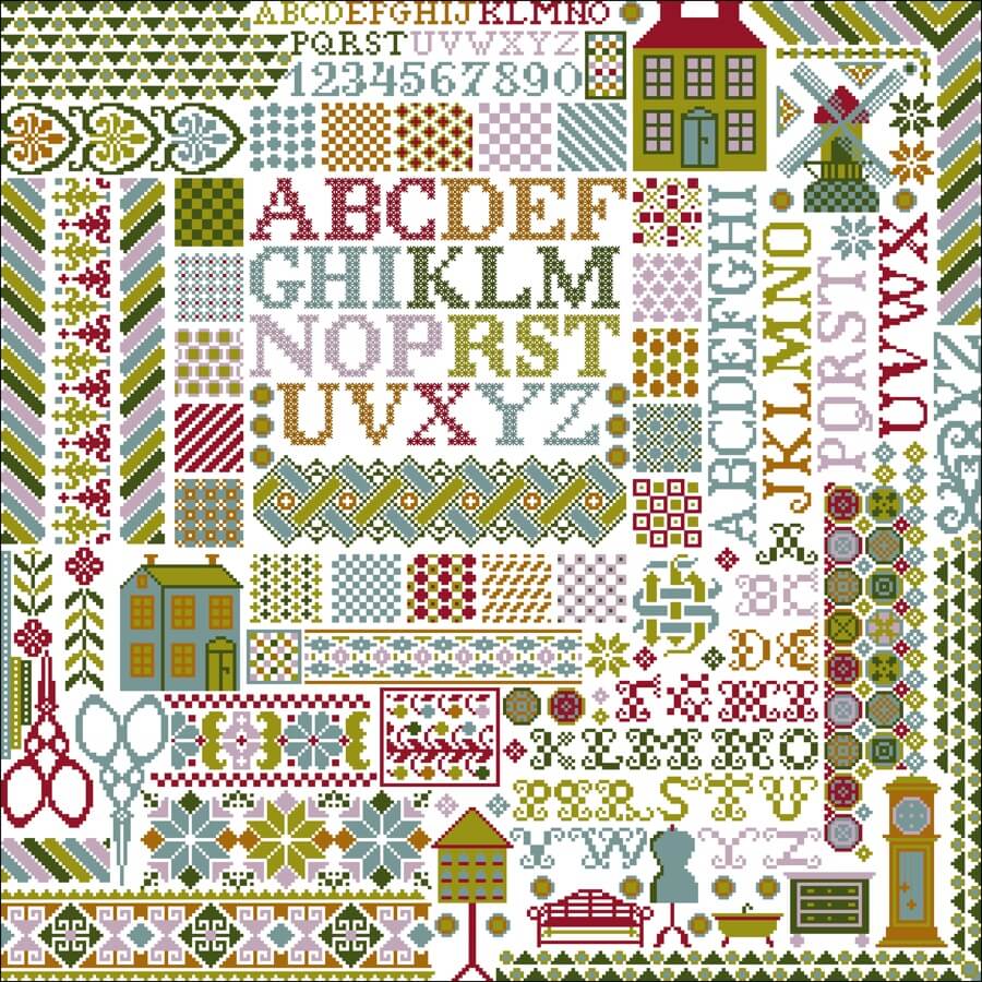 Toile et fils suggéré : lin blanc, DMC mouliné: 932.3345.471.321.3042.3829